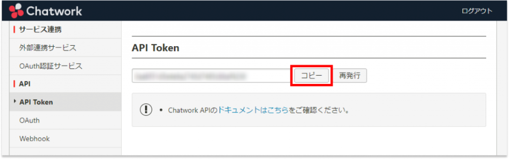また、Chatwork上で確認したAPI Tokenと、RECEPTIONIST管理画面の「チャット設定」の「API Token」が異なる場合は、正しいAPI Tokenを再設定してください。