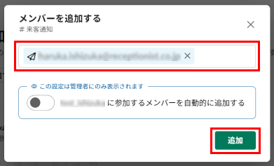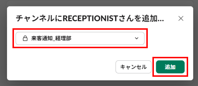 プライベートチャンネルにRECEPTIONIST Botを追加する方法2