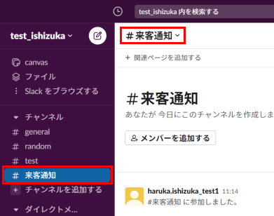 Slackの通知先チャンネルに「Slack テスト通知」と届けば、チャット設定は完了です。
