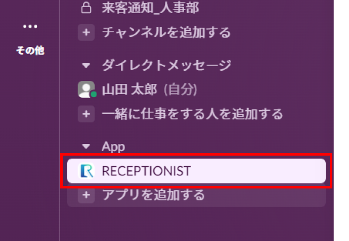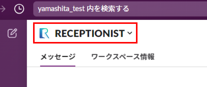1.Slackの「ホーム」>左の「App」>「RECEPTIONIST」