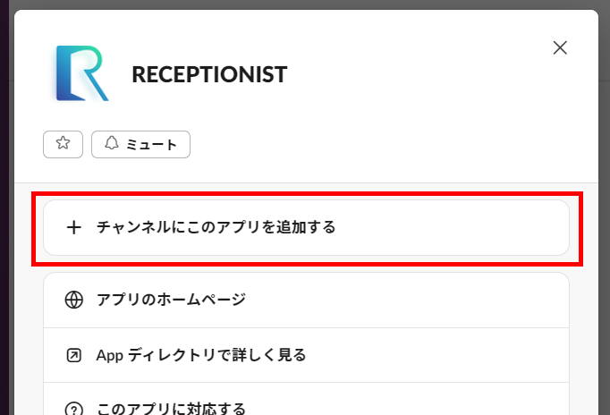 プライベートチャンネルにRECEPTIONIST Botを追加する方法1