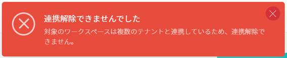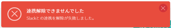 「Slackとの連携を解除」ボタンをクリックした際、以下のエラーが表示される場合は、弊社にて連携解除を行いますので、以下フォームをご記入の上、お問い合わせください。