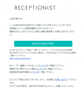 [2024/10/28] ユーザー権限付与が管理画面の操作のみで完了できるようになりました。 2024年10月28日 アップデート日:2024/10/28 これまでユーザー権限の付与を行う場合、管理者の管理画面での設定後に、権限付与された社員に送られるメールからユーザー権限の受け取り操作が必要でした。 本リリースにより、管理者の管理画面での設定のみでユーザー権限の付与が完了できるようになりました。ユーザー権限を付与された社員には、ユーザー権限付与が完了した案内が届きます。 例)管理者権限を付与した場合 (画像をクリックすると拡大表示します) 詳細は下記をご覧ください。 関連記事 ユーザー権限の設定方法(管理者/経理担当者/受付担当者/調整アポ管理者/会議分析権限) | ヘルプセンター|日程調整ツール「調整アポ」